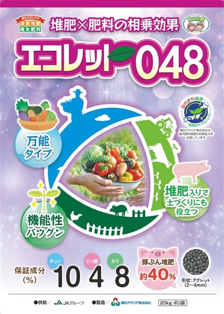 ・豚ぷん堆肥入りなので、土づくりに役立ちます。また堆肥と化成肥料の一粒化により、肥効が優れています。