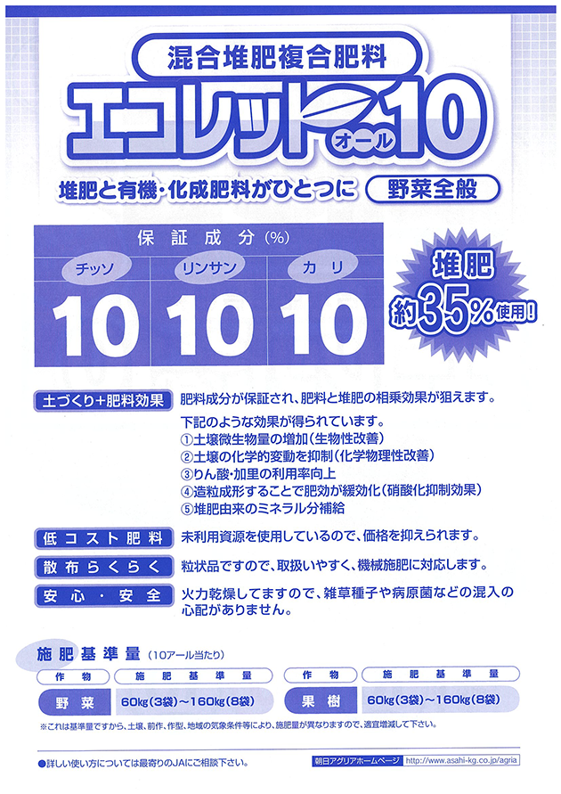 - ・豚ぷん堆肥入りなので、土づくりに役立ちます。また堆肥と化成肥料の一粒化により、肥効が優れています。